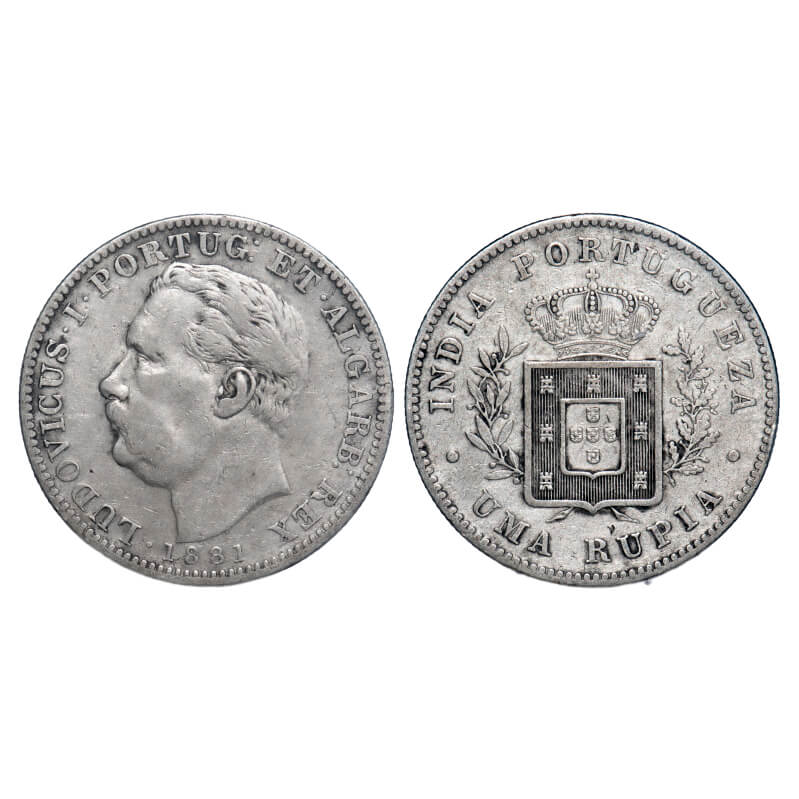 | Indo Portuguese, Silver Rupia, 11.29g, D Luis (1861-1889 AD), 1881 AD, Goa issue, Bust on obverse, date, denomination Uma Rupia on obverse. A.Gomes (page 602), 14.01, KM 312. About Very Fine, Scarce. |
