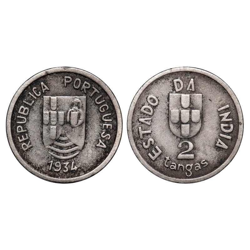 Indo Portuguese, Copper Nickel, 2 Tanga, 2.99g, Republic (1910-1961 AD), 1934, AD. A.Gomes (page 605) 04.01/ KM 20. Very Fine, Scarce.