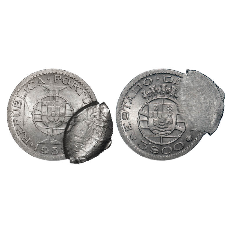 Indo Pourtuguese, Copper Nickel, Republic, 1 Escudos 1959 AD. error- planchet flaw on both sides A....