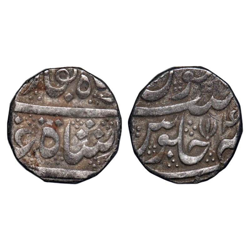 Madras Presidency, Silver Rupee, 11.58g, Arcot mint (1748-1749 AD issue), INO Ahmad Shah Bahadur, 4 RY. P.Stevens (Page 382) 2.51/F.Prid 137. Very Fine, Rare.