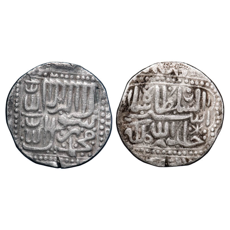 | Religious Token, Delhi Sultanate Imitation of Silver Rupee "Sher Shah Suri" Religious Token Silver 9.87 g , Obv: kalima shahada, in margin four khalifas name ,Rev: ruler name and title in dotted Mirhab, nagari legend at bottom. Very Fine, Scarce. |