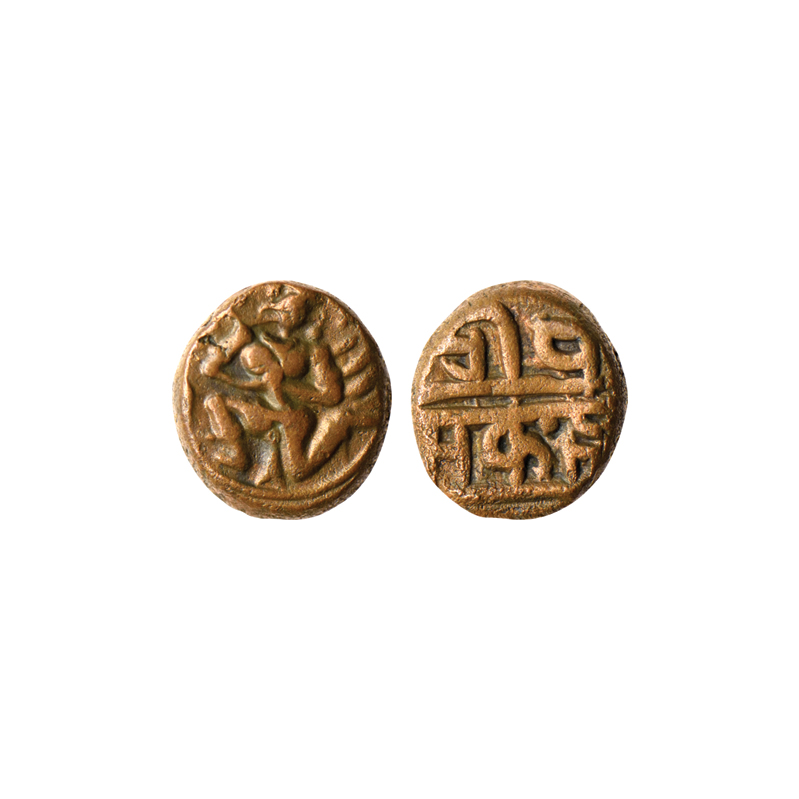 Vijayanagar, Krishnadevaraya (c. 1509-1529 AD), Copper Kasu, 3.53gm, Obv: Garuda facing to left, hands joined in breast in the attitude of devotion, Rev: Nagari legend 'Sri Pratapa Krishna Raya'. K.Ganesh # 127.