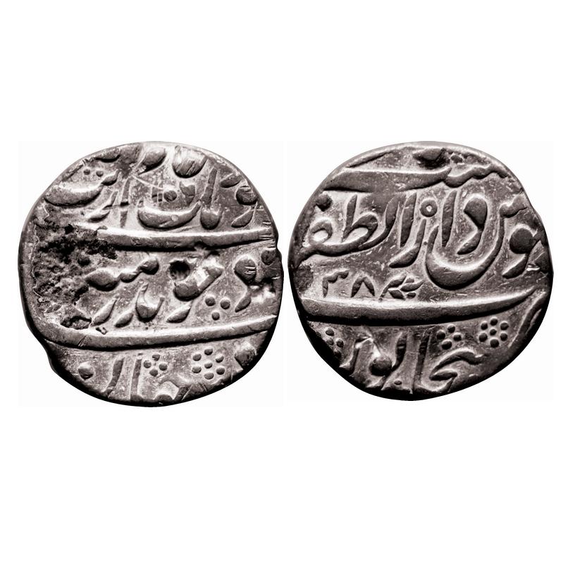 Aurangzeb, Silver Rupee, 11.35g, Dar us Zafar Bijapur Mint, AH 1106/38 RY, mint name split in two lines. KM 300.23. Test marks, Very Fine+, Scarce.