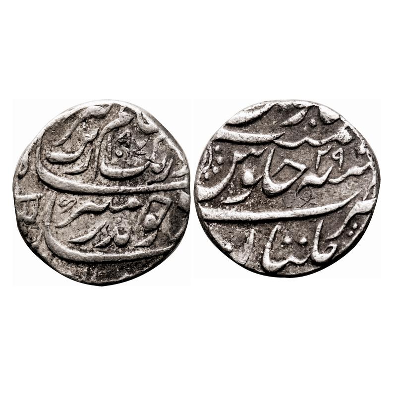 Aurangzeb, Silver Rupee, 11.39g, Mailapur Mint, 4x RY, complete mint name on reverse. KM 300.57. Ve...