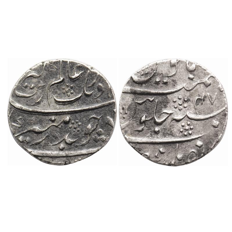 Aurangzeb, Silver Rupee, 11.45g, Nusratabad Mint, AH unseen/4x RY. KM 300.36. About Very Fine, Scar...