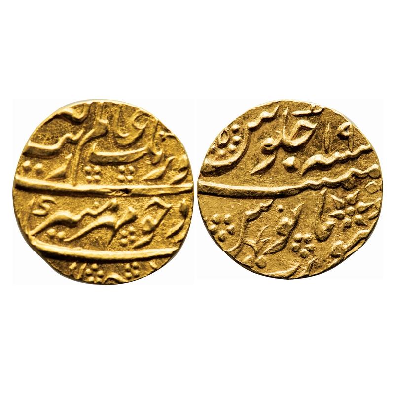 Aurangzeb, Gold Mohur, 11.04g, Surat Mint, AH (10)78/1x RY, Mirh-e-munir couplet, with beautiful mi...