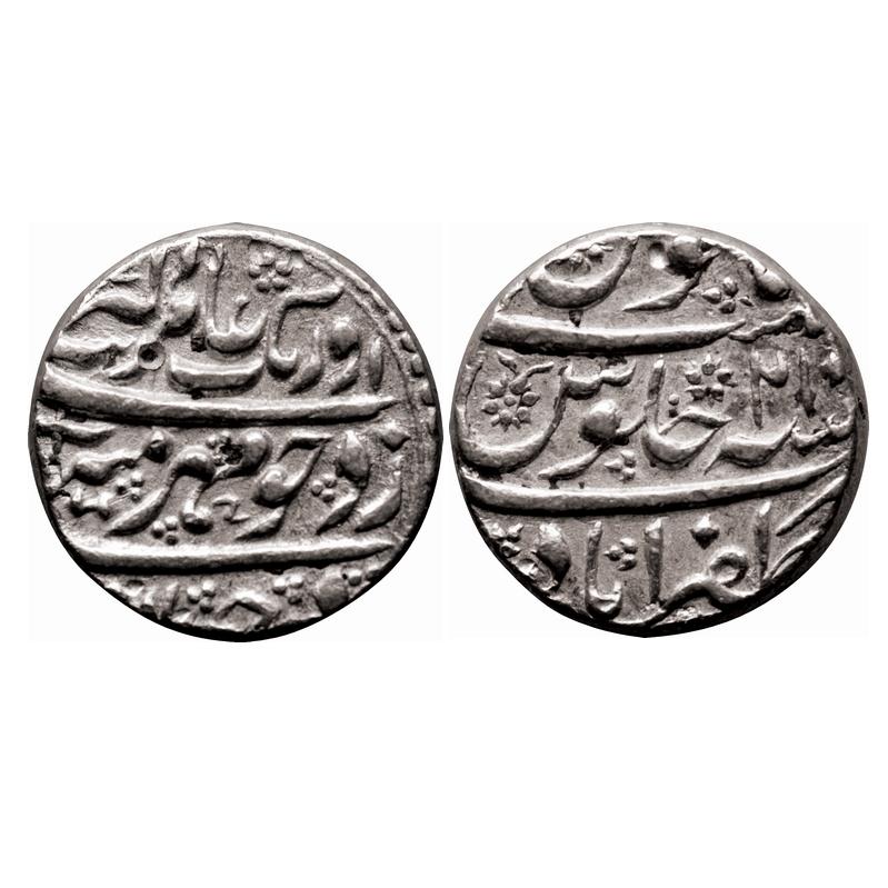 Aurangzeb, Silver Rupee, 11.46g, Zafarabad Mint, Mehr Munir Couplet, 21 RY, complete mint name at bottom. KM 300.93. Very Fine, Scarce.