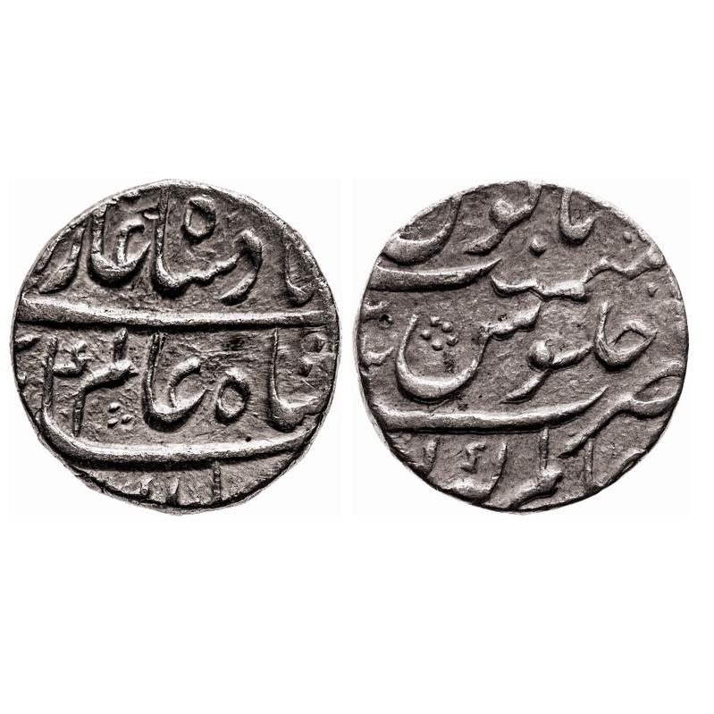 Shah Alam Bahadur, Silver Rupee, 11.46g, Azimabad Mint, AH 1119 / Ahad (1) RY. KM 347.4. Extremel...