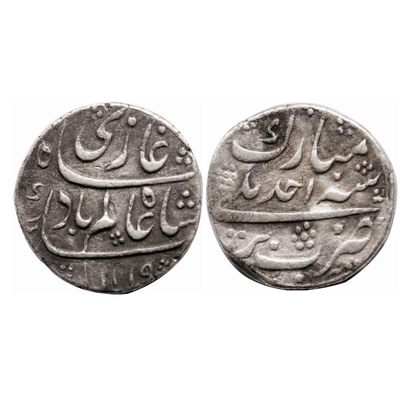 Shah Alam Bahadur, Silver Rupee, 11.58g, Allahabad Mint, AH 1122 / 4 RY. KM 347.3. About Extremely ...