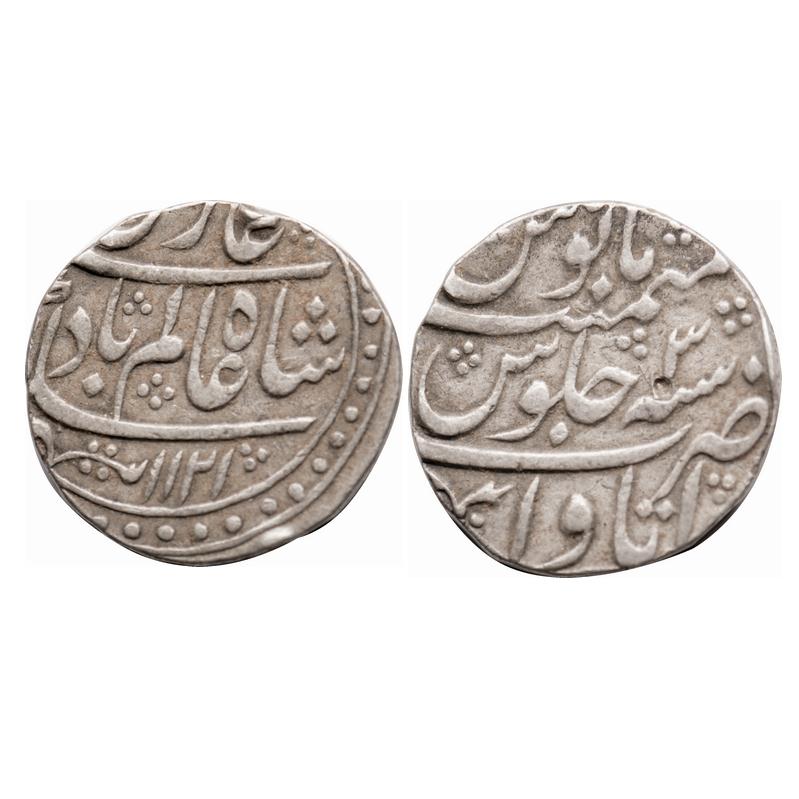 Shah Alam Bahadur, Silver Rupee, 11.37g, Itawa Mint, AH 1121 / 3 RY. KM 347.8. Very Fine, Scarce.