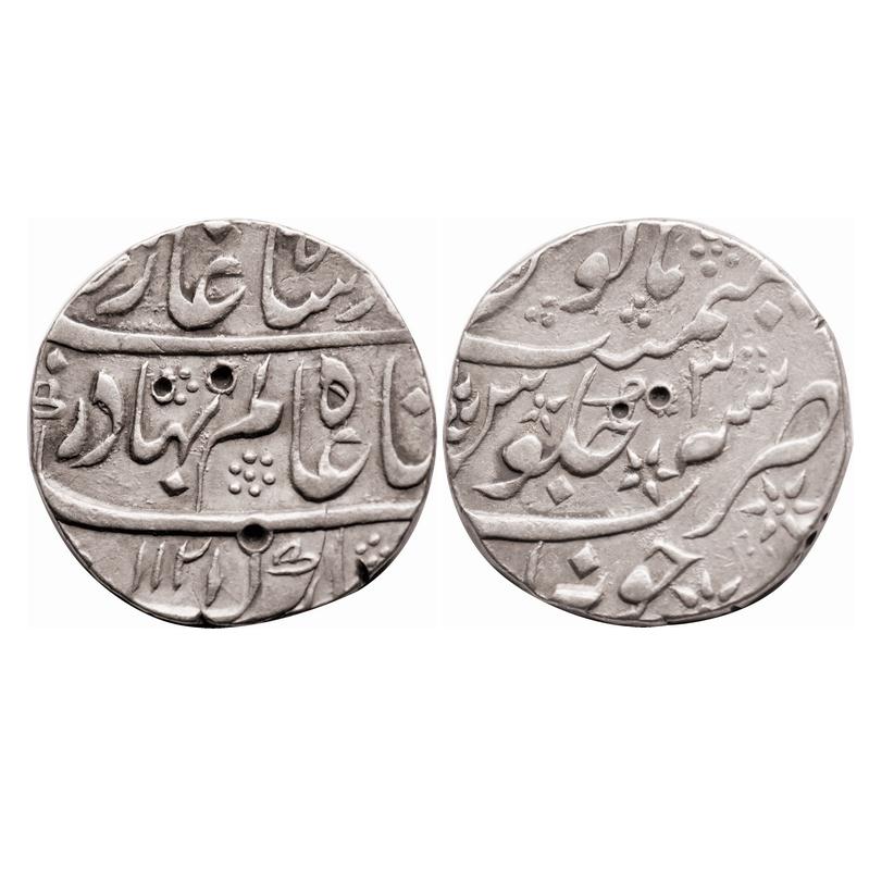Shah Alam Bahadur, Silver Rupee, 11.37g, Itawa Mint, AH 1121 / 3 RY. KM 347.8. Very Fine, Scarce....