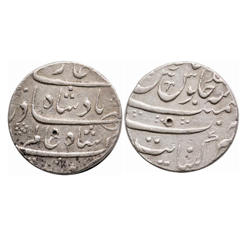 Shah Alam Bahadur, Silver Rupee, 11.49g, Kanbayat Mint, Ahad (1) RY. KM 348.23. Test marks, Very Fine, Scarce.