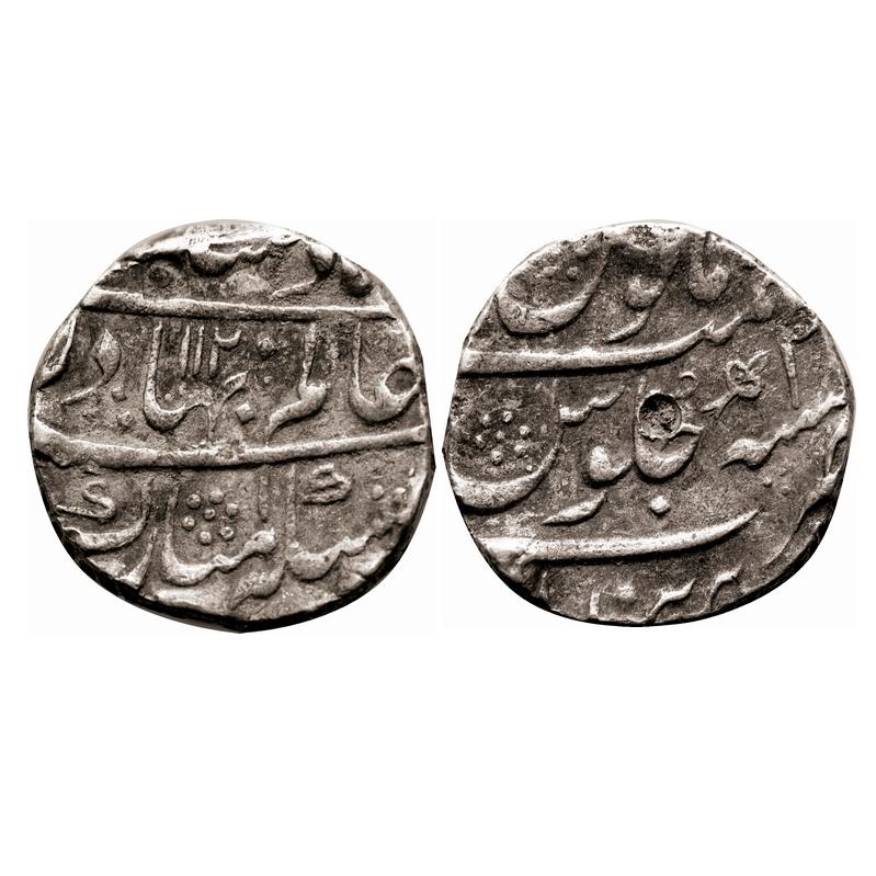 Shah Alam Bahadur, Silver Rupee, 11.40g, Parenda Mint, AH 1120/2 RY, with a different flower mint mark on reverse near RY. KM 348.25. Test mark, About Very Fine, Very Scarce.