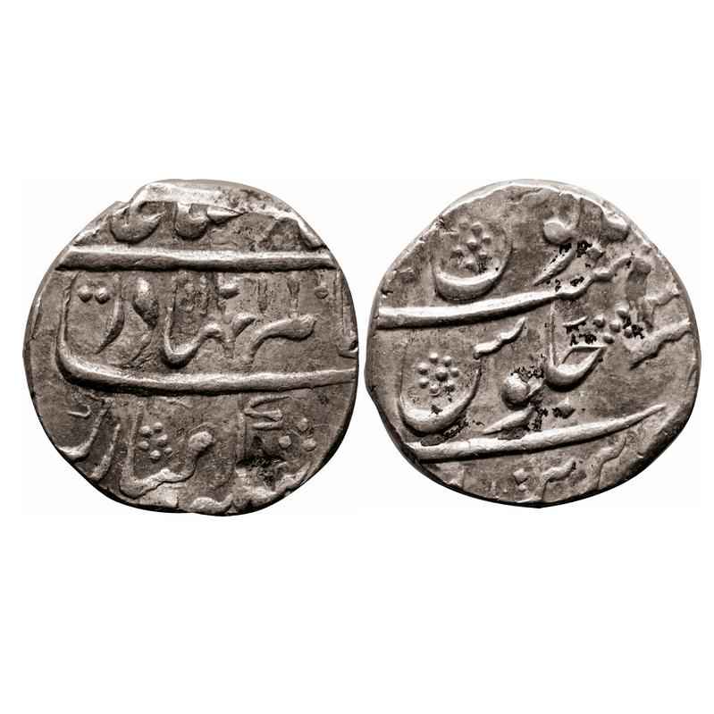 Shah Alam Bahadur, Silver Rupee, 11.40g, Parenda Mint, AH 1120/2 RY, with a different flower mint m...