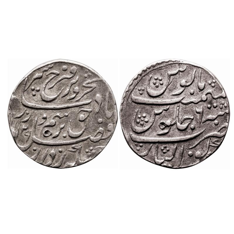 Farrukhsiyar, Silver Rupee, 11.33g, Gwalior Mint, AH 1129 / 6 RY. KM 377.30. Test mark, Very Fine, Scarce.
