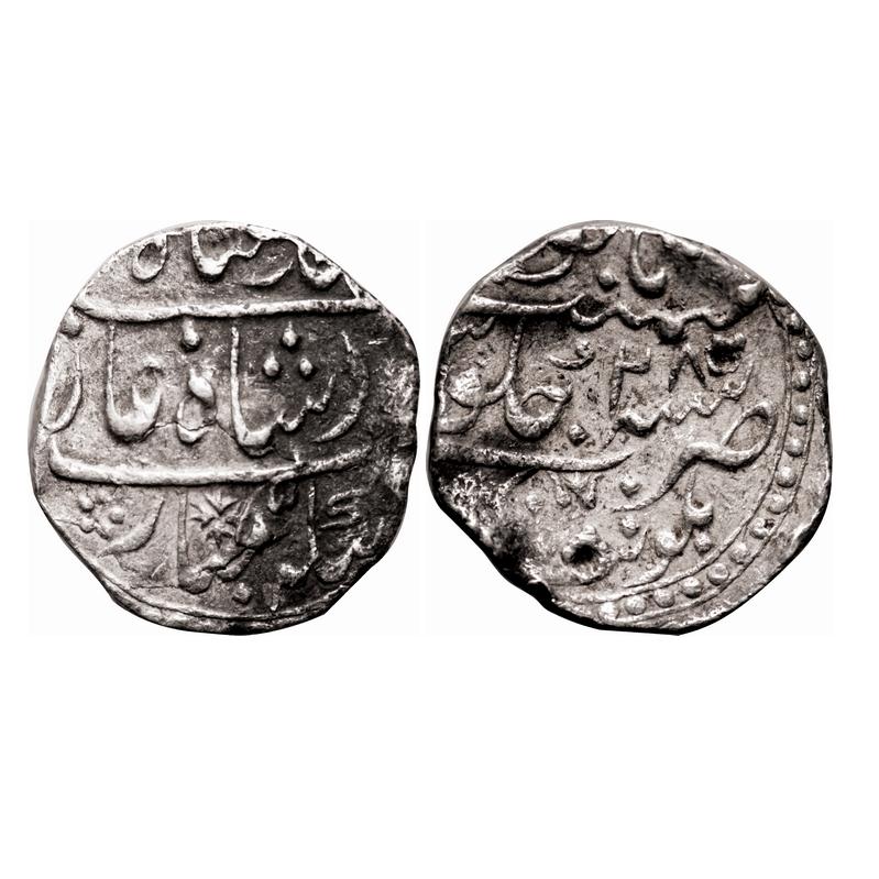 Muhammad Shah, Silver Rupee, 11.33g, Balwantnagar Jhansi Mint, 28 RY. KM 436.14. Test marks, Fine+, Scarce.
