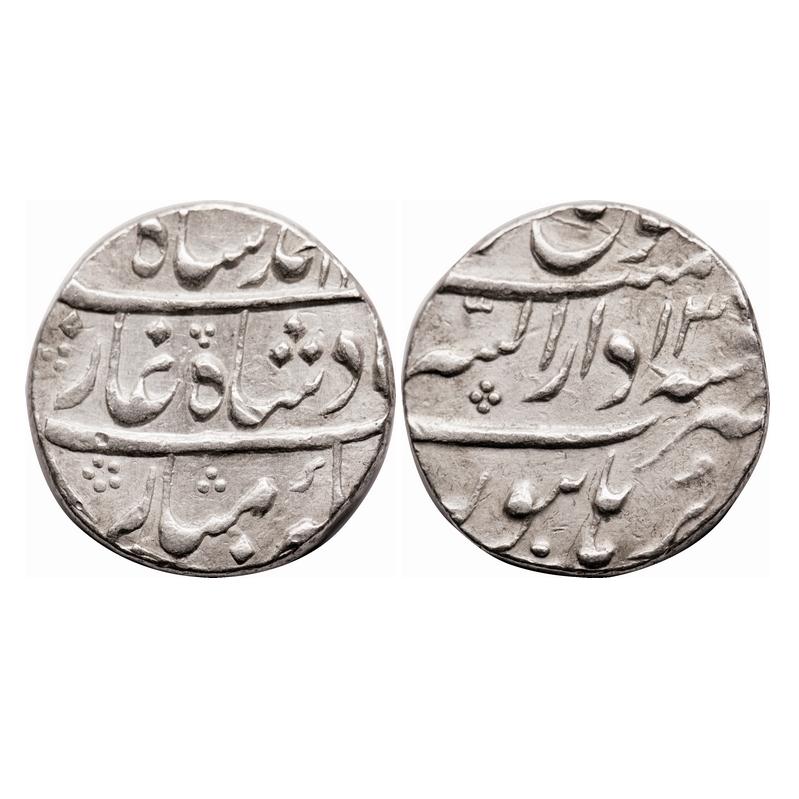 Muhammad Shah, Silver Rupee, 11.31g, Bareli Mint, AH 1157 / 27 RY, KM 436.18. About Extremely Fine,...
