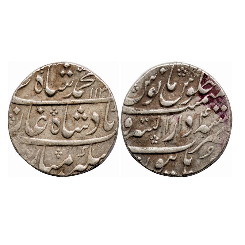 Muhammad Shah, Silver Rupee, 11.36g, Dilshadabad Mint, 28 RY. KM 436.67. Test marks, Fine+, Scarce....
