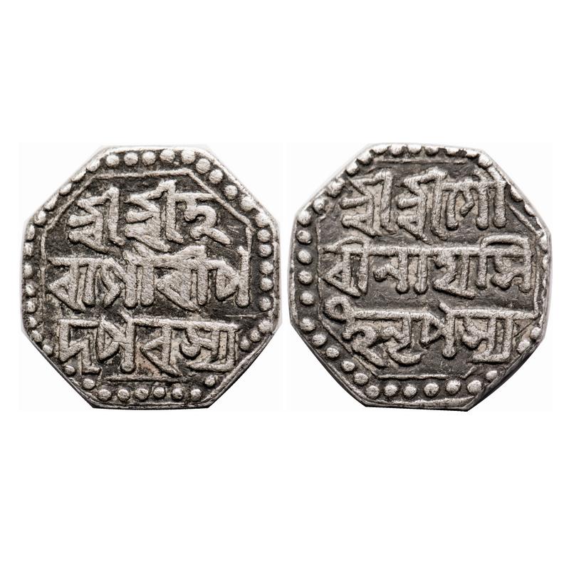 Assam, Silver, 1/2 Rupee, 5.44g, Gaurinatha Simha, Obv: Sri Sri Ha / ra Gauri Pa / da Parasya, Rev...