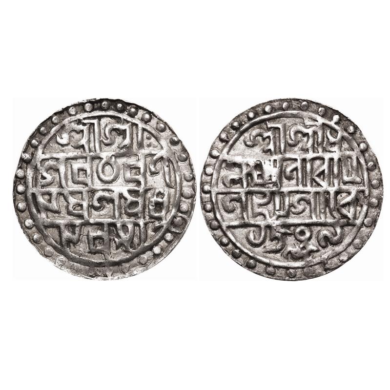 Cooch Behar, Silver Rupee, 10.33g, Nara Narayan (1555/1587 AD), SE 1477. Archaic Bengali Script. Ob...