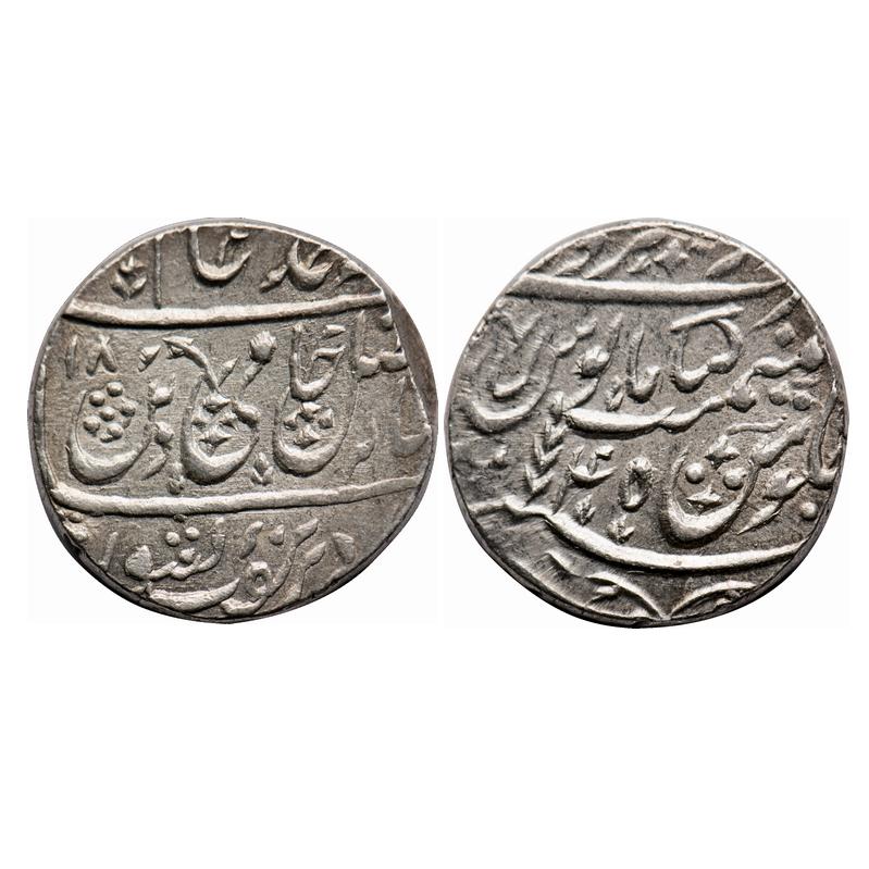Maratha Confederacy, Silver Rupee, 11.11g, Dar-us-Sarur Saharanpur Mint, in the name of Shah Alam II, AH (12)18 / 45 RY. M&W T1y. About Extremely Fine, Scarce.