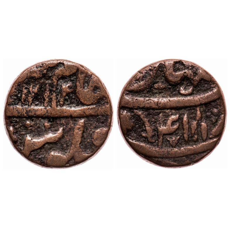 Maratha Confederacy, Copper Double Paisa, 15.86g, Dar-us-Sarur Saharanpur Mint, in the name of Shah Alam II, AH 1214/ RY 41, mint name on rev top, katar & sword as mint mark. M&W T3b. Very Fine, Scarce.