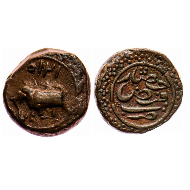Mysore, Copper, ΒΌ Paisa, 2.90g, Tipu Sultan (1787-1799 AD), Faiz Hisar Mint, (AM 1226) error date 1...
