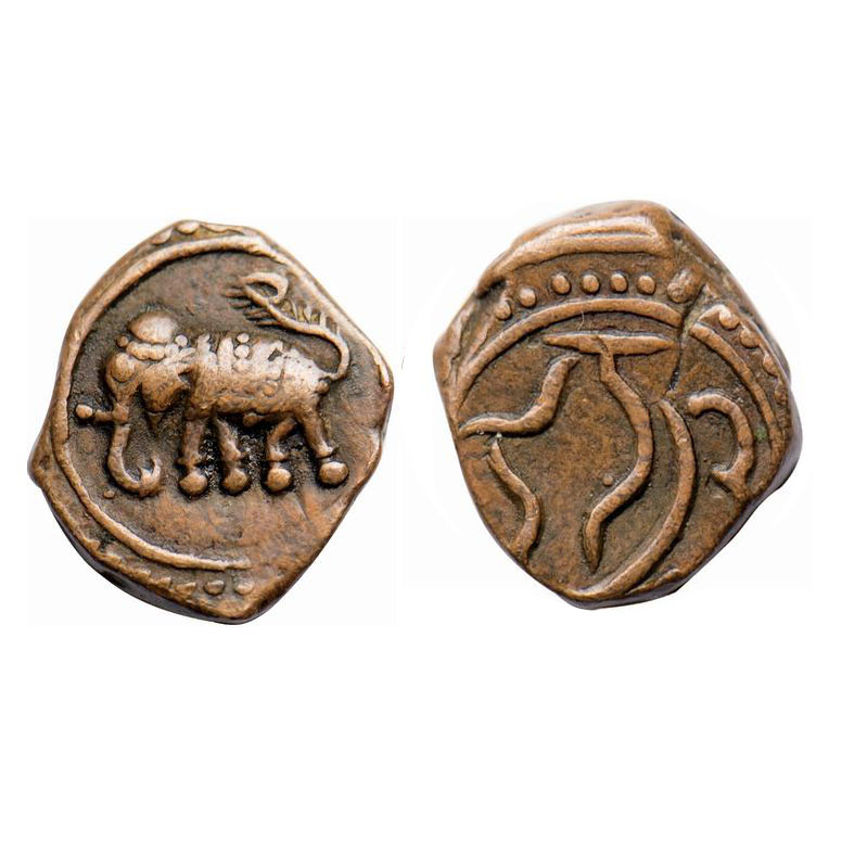 Mysore, Copper 1/4 Paisa, 2.41g, Tipu Sultan (1787-1799 AD), Kharpa Mint, Obv: Elephant left, Rev: mint, with plain dotted borders. KM Unlisted/Henderson Unlisted. Very Fine+, Rare. |
