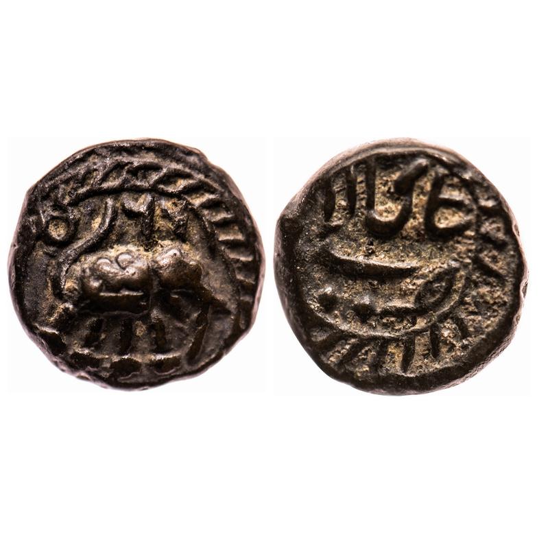 Mysore, Copper ¼ Paisa, 2.68g, Tipu Sultan (1787-1799 AD), Khaliqabad Mint, AM 1225 (Error), retro date on elephant towards right. KM 81.1/Henderson 463. Very Fine, Scarce.