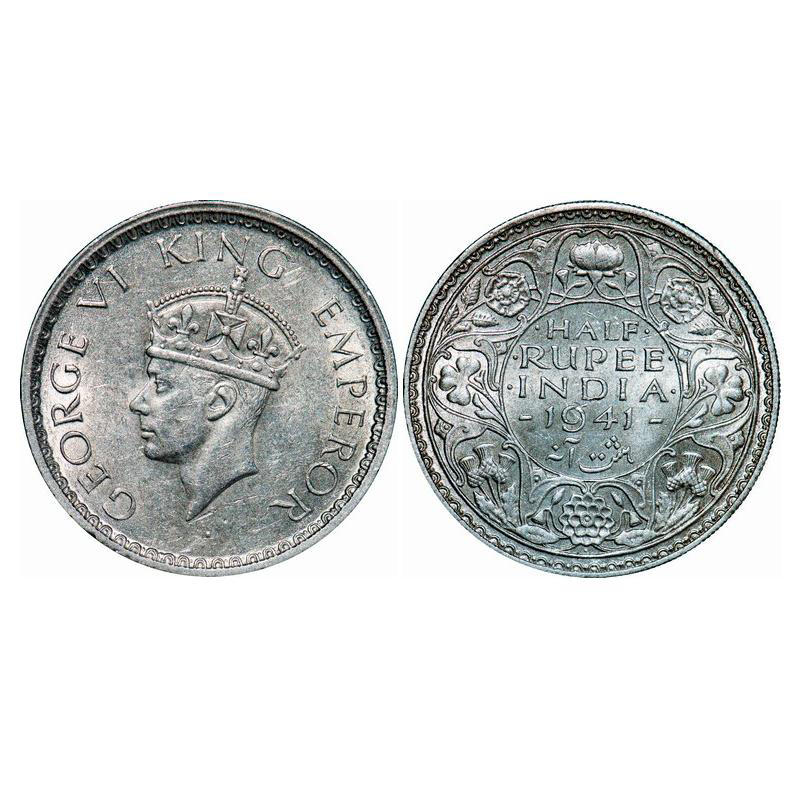 | George VI, Half Silver, Half Rupee, 1941, Bombay Mint, Head Type II, A(a)/I(i), Dot, Security edge. GK 1302. Uncirculated. Scarce. |
