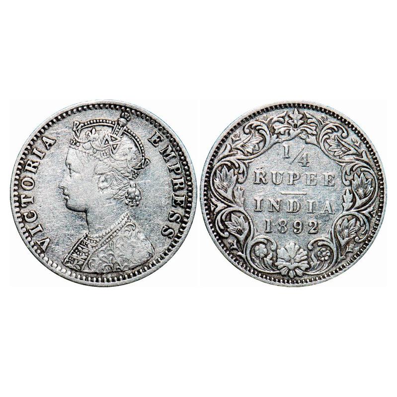 Victoria Empress, Silver, 1/4 Rupee, 1892, Bombay Mint, C(i)/I, 'B' incused. GK 722. Extremely Fine...