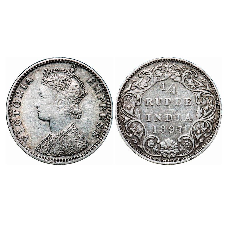 Victoria Empress, Silver, 1/4 Rupee, 1897, Bombay Mint, C(i)/I, 'B' incused. GK 731. Very Fine+. Scarce.