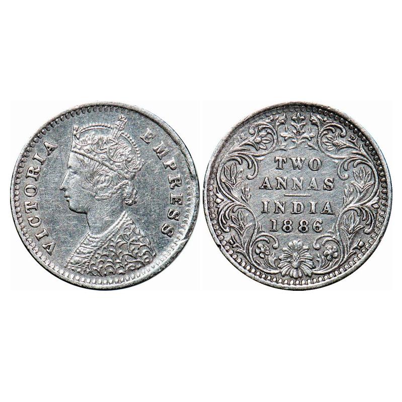 Victoria Empress, Silver, 2 Annas, 1886, Bombay Mint, B/II, 'B' incused. GK 781. Extremely Fine+. Scarce.