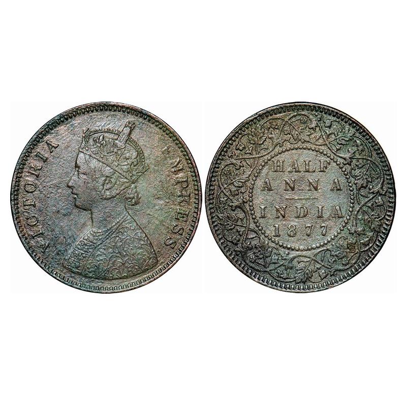 Victoria Empress, Copper, Half Anna, 1877, Bombay Mint, B/II. GK 820. Very Fine+. Scarce.
