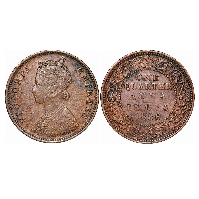 Victoria Empress, Copper, Quarter Anna, 1886, Bombay Mint, B/I, No mint mark. GK 841. Very Fine+. Scarce.