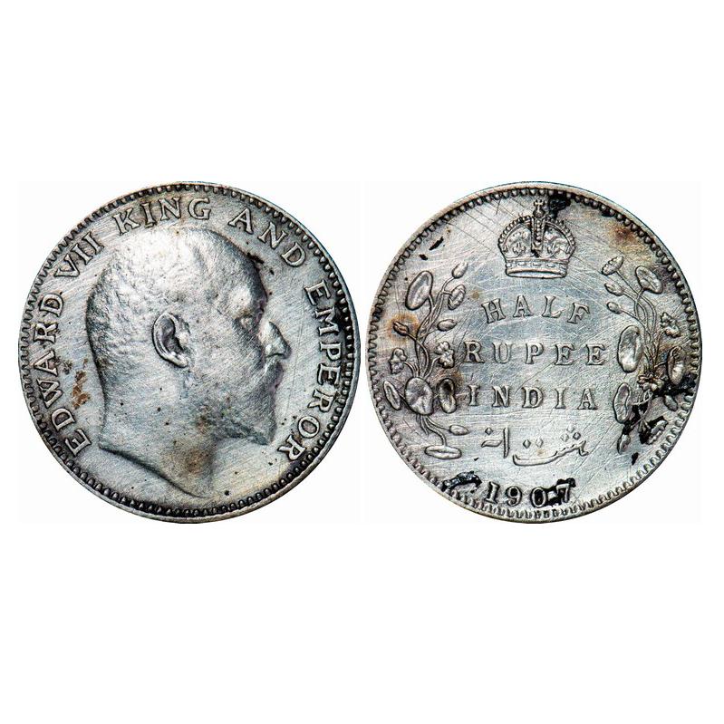 Edward VII, Silver, Half Rupee, 1907, Bombay Mint, 'B' incused and dot, Scratches on Rev. GK 965. Extremely Fine, Cleaned. Scarce.