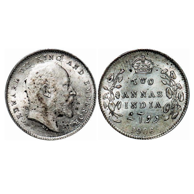 Edward VII, Silver, 2 Annas, 1906, Calcutta Mint, No mint mark. GK 983. Almost Uncirculated. Scarce...