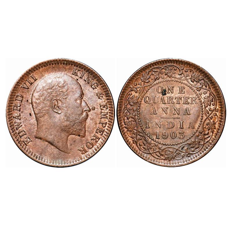 Edward VII, Copper, Quarter Anna, 1903, Calcutta Mint, No mint mark. GK 994. Uncirculated. Scarce.