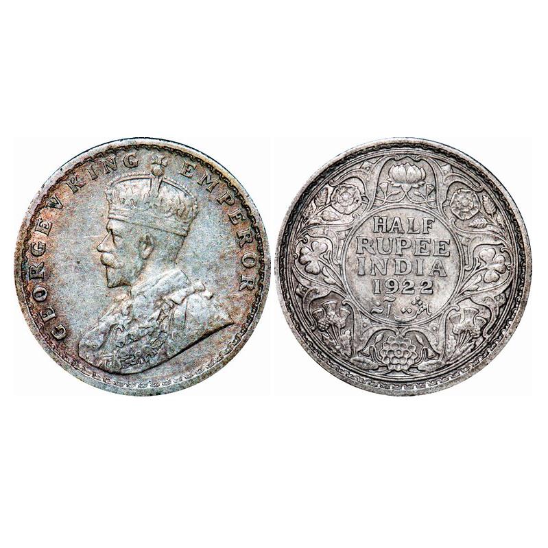 George V, Silver, Half Rupee, 1922, Calcutta Mint, No dot. GK 1059. Extremely Fine+. Scarce.