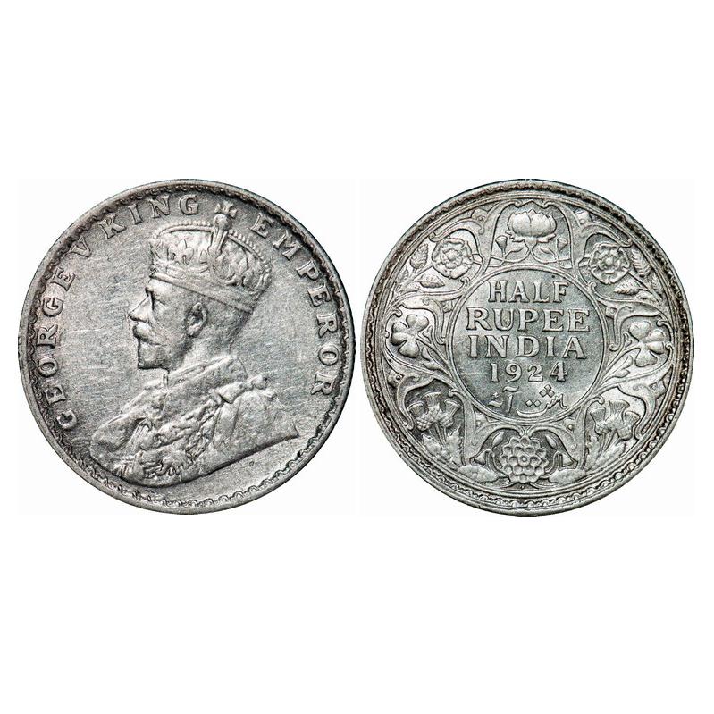 George V, Silver, Half Rupee, 1924, Bombay Mint, Dot. GK 1064. About Uncirculated. Scarce.