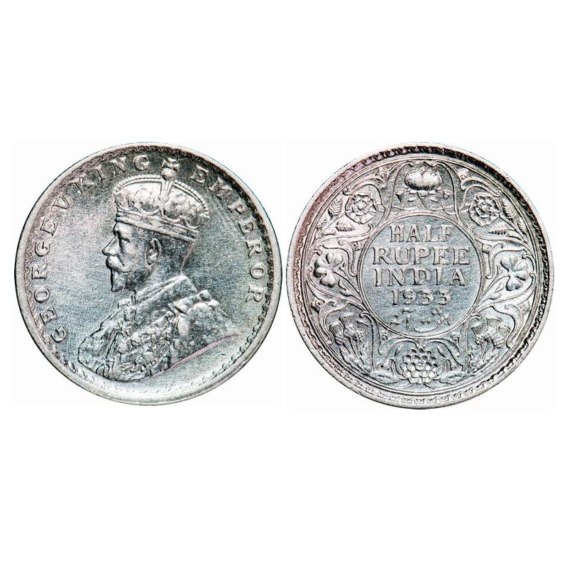 George V, Silver, Half Rupee, 1933, Calcutta Mint, No dot. GK 1073. Uncirculated, Cleaned. Very Scarce.