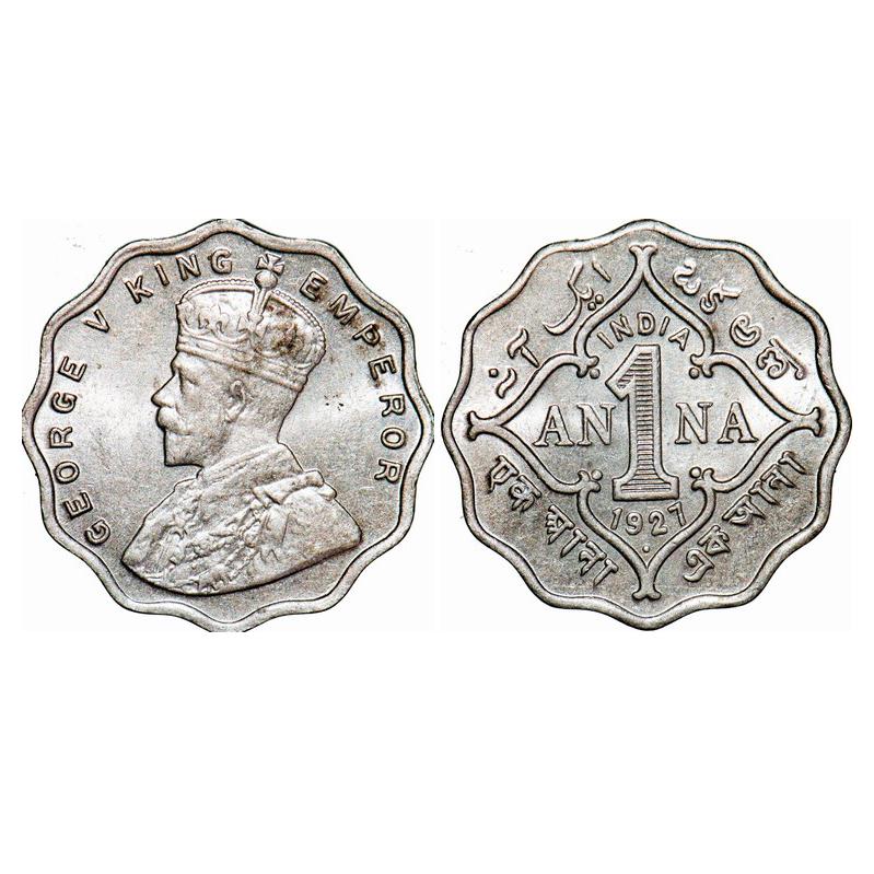 George V, Copper-Nickel, 1 Anna, 1927, Bombay Mint, Dot. GK 1158. Uncirculated. Very Scarce.