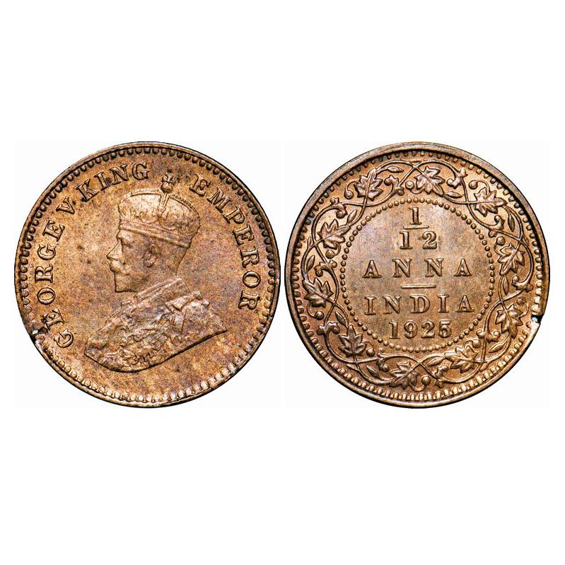 George V, Bronze, 1/12 Anna, 1925, Calcutta Mint, No dot. GK 1238. NGC Slabbed MS 63 RB. Very Scarc...