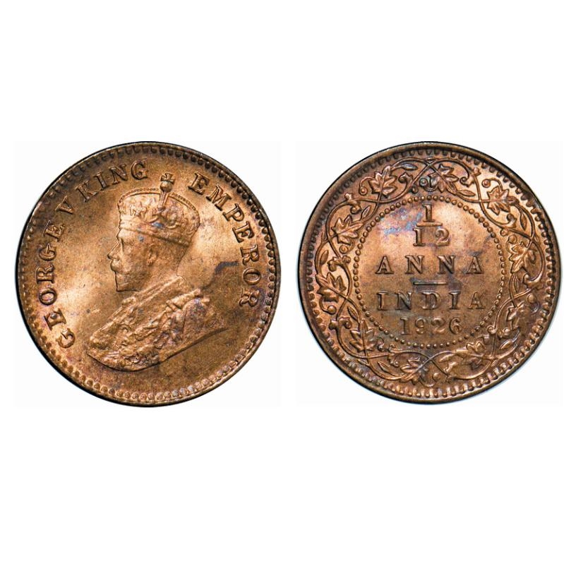George V, Bronze, 1/12 Anna, 1926, Calcutta Mint, No dot. GK 1240. Brilliant Uncirculated. Rare.