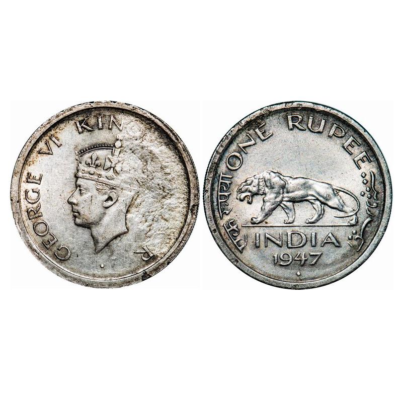 | George VI, Nickel, Rupee, 1947, Bombay Mint, E/IV, Diamond, Security edge, Normal diamond, Error, Struck through error on Obv. GK 1292. Extremely Fine+. Rare. |