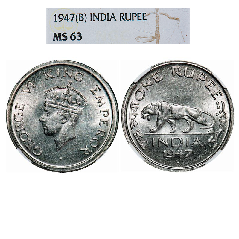 George VI, Nickel, Rupee, 1947, Bombay Mint, E/IV, Diamond, Security edge. GK 1292. NGC Slabbed MS 63. Rare.