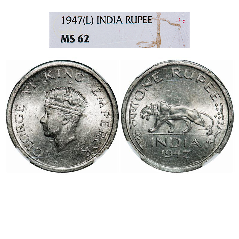 George VI, Nickel, Rupee, 1947, Lahore Mint, E/IV, No mint mark, Security edge. GK 1293. NGC Slabbed MS 62. Rare.