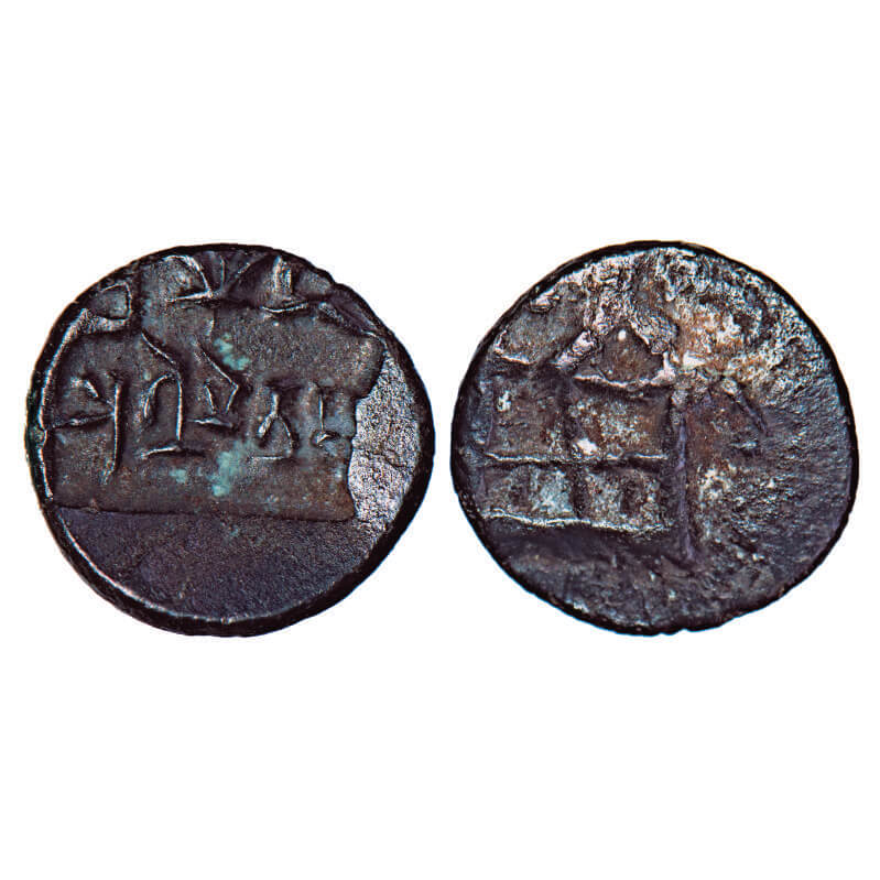 | Panchala of Ahichhatra Dynasty, Agnimitra, Copper, 1.36g, Obv: Agni is depicted only symbolically, as a lamp or a flame, Rev: Above the three 'Panchala' symbols in a row, legend in Brahmi ‘Agnimitasa’ below all in a deep square. Bop & Pieper # 2. About Very Fine, Scarce. |