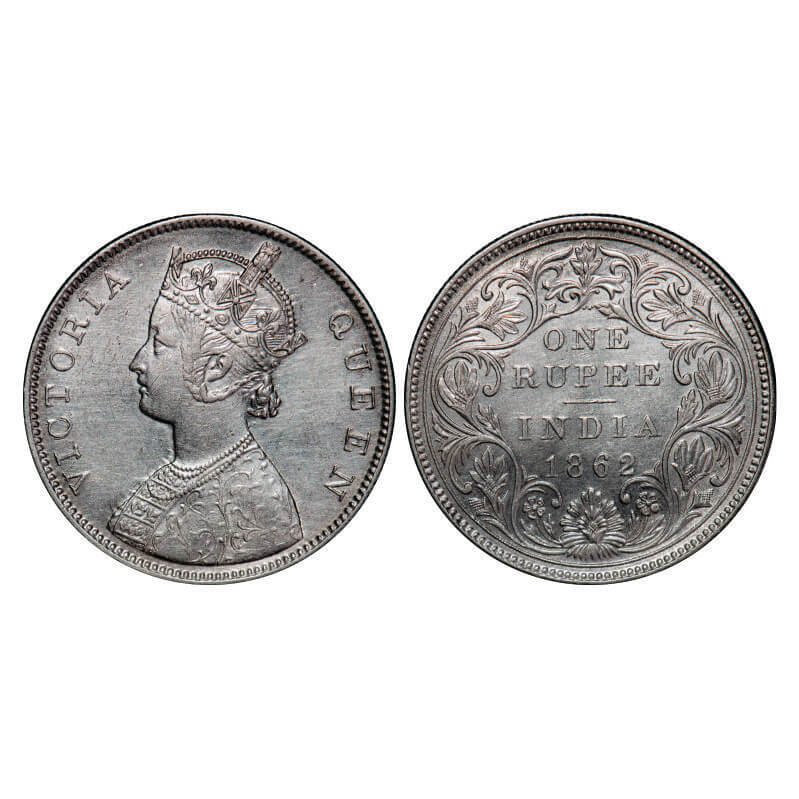 Victoria Queen, Silver, Rupee, 1862, Bombay Mint, B/II/3/0, Dot settled in a row. GK 293. About Uncirculated. Rare.