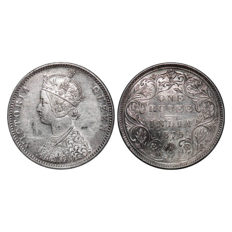 Victoria Queen, Silver, Rupee, 1875, Calcutta Mint, A1/I, No mint mark, Top stroke of numeral 5 lon...